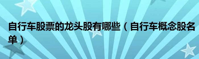 导读 大家好,小号哥来为大家解答以上问题,自行车股票的龙头股有哪些,自行车概念股名单很多人还不知道,现在让我们一起来看看吧!