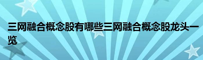 大家好,小号哥来为大家解答以上问题,三网融合概念股有哪些三网融合概念股龙头一览很多人还不知道,现在让我们一起来看看吧!