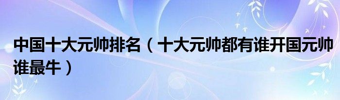 大家好,小源来为大家解答以上问题。中国十大元帅排名,十大元帅都有谁开国元帅谁最牛很多人还不知道,现在让我们一起来看看吧!