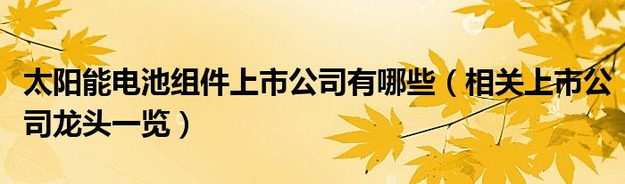 大家好,小号哥来为大家解答以上问题,太阳能电池组件上市公司有哪些,相关上市公司龙头一览很多人还不知道,现在让我们一起来看看吧!