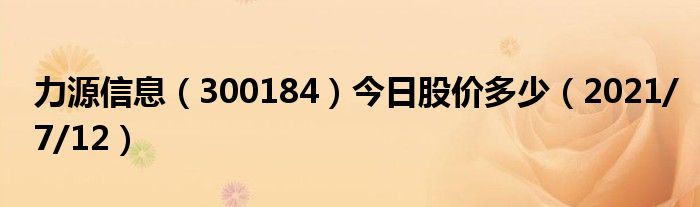 导读 大家好,小号哥来为大家解答以上问题,力源信息,300184今日股价多少,2021 7 12很多人还不知道,现在让我们一起来看看吧!