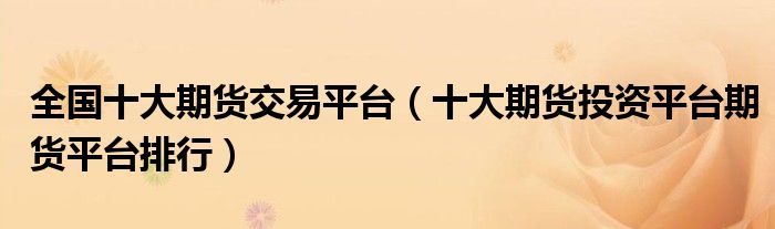 导读 大家好,小源来为大家解答以上问题。全国十大期货交易平台,十大期货投资平台期货平台排行很多人还不知道,现在让我们一起来看看吧!1、永