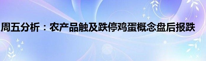 大家好,小号哥来为大家解答以上问题,周五分析:农产品触及跌停鸡蛋概念盘后报跌很多人还不知道,现在让我们一起来看看吧!