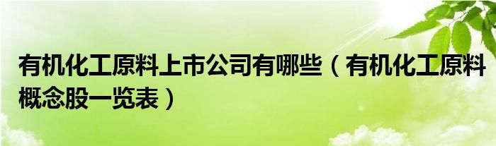 导读 大家好,小号哥来为大家解答以上问题,有机化工原料上市公司有哪些,有机化工原料概念股一览表很多人还不知道,现在让我们一起来看看吧!