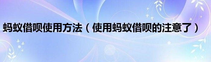导读 大家好,小行来为大家解答以上问题。蚂蚁借呗使用方法,使用蚂蚁借呗的注意了很多人还不知道,现在让我们一起来看看吧!