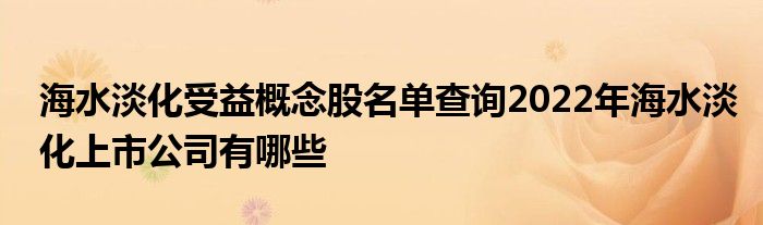 导读 大家好,小号哥来为大家解答以上问题,海水淡化受益概念股名单查询2022年海水淡化上市公司有哪些很多人还不知道,现在让我们一起来看看吧!