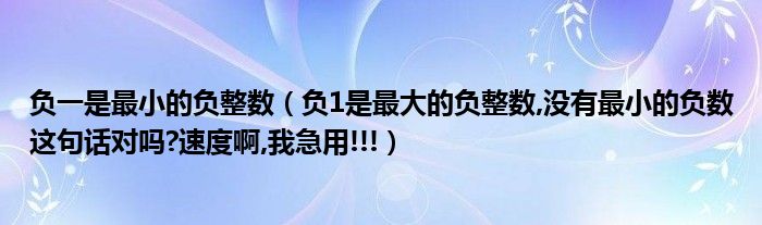 导读 大家好,精选小编来为大家解答以上的问题。负一是最小的负整数,负1是最大的负整数,没有最小的负数这句话对吗?速度啊,我急用!!!很多人还不